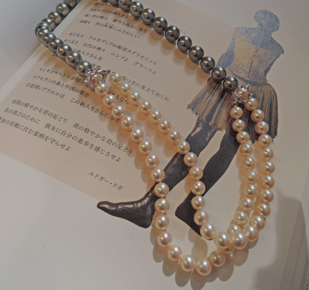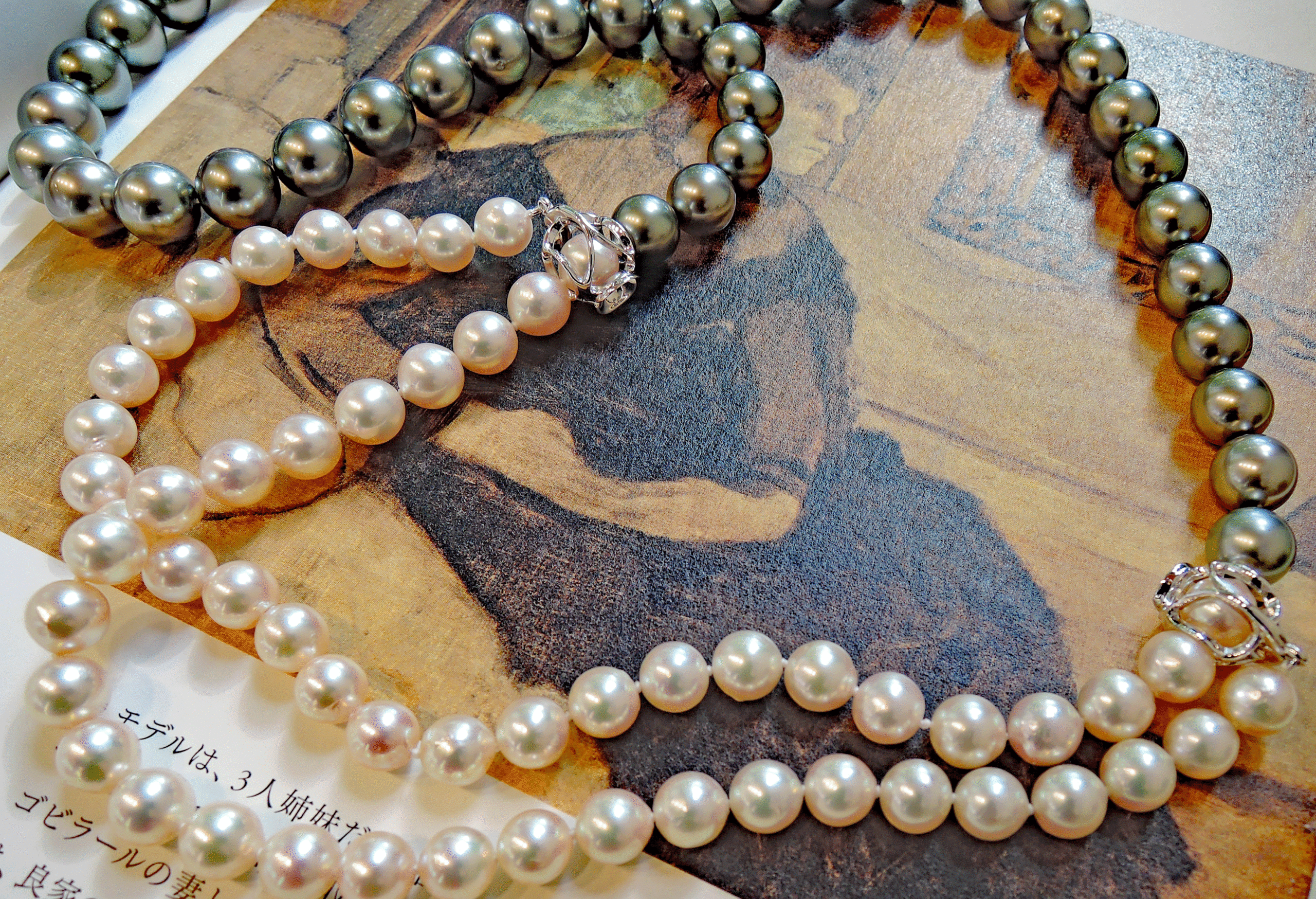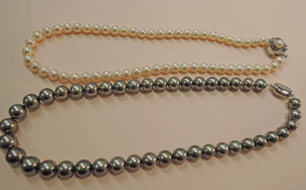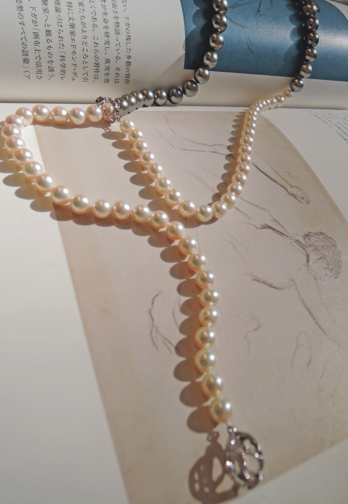 クロチョウとアコヤの一連ネックレスを1本のネックレスにリモデリングさせていただきました。