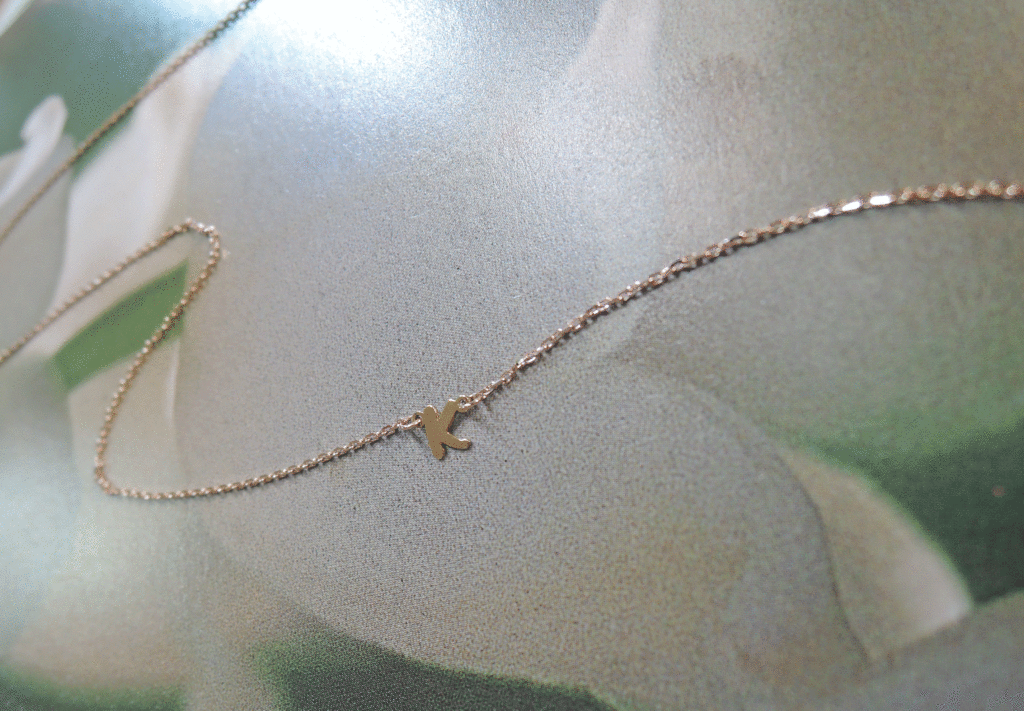 イニシャルのネックレスはずっと着けたままで過ごしたいとのご希望でした。